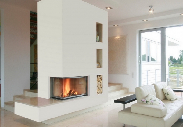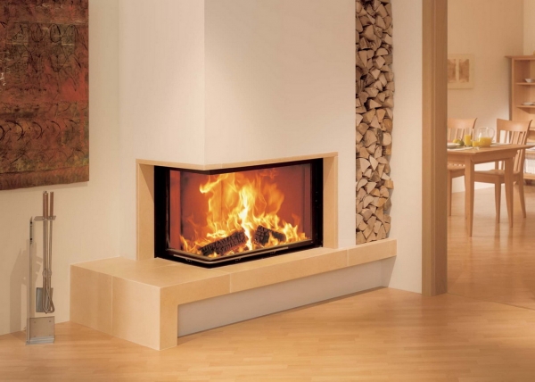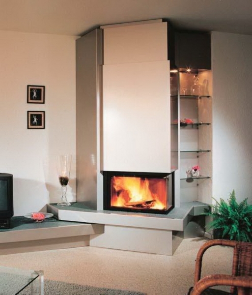 Wkład kominkowy z szybą narożną ramkową. Dzięki systemowi samodocisku szyba nie zużywa uszczelki podczas otwierania. Wkład posiada doprowadzenie powietrza z zewnątrz do komory spalania pod ruszt (pierwotne) oraz w górną część wkładu (wtórne) umożliwiające dopalania cząsteczek sadzy.