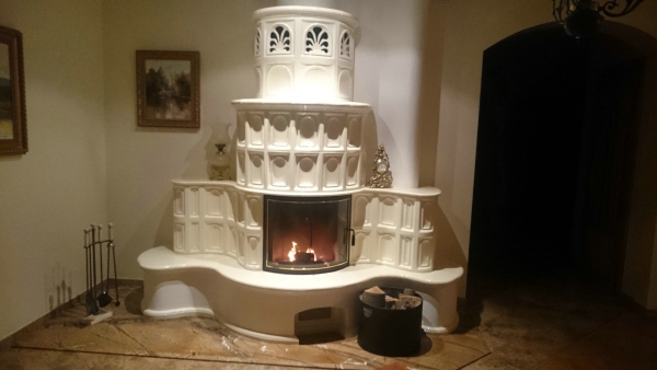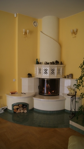 Wkład kominkowy z szybą półokrągłą otwieraną do boku. Klasyczny kształt szyby półokragłej i średnicy koła 422mm.